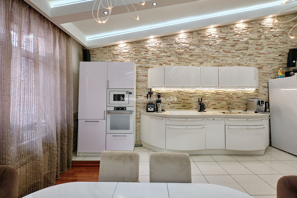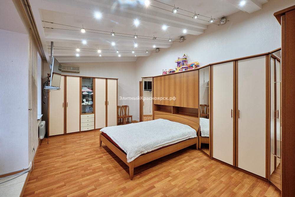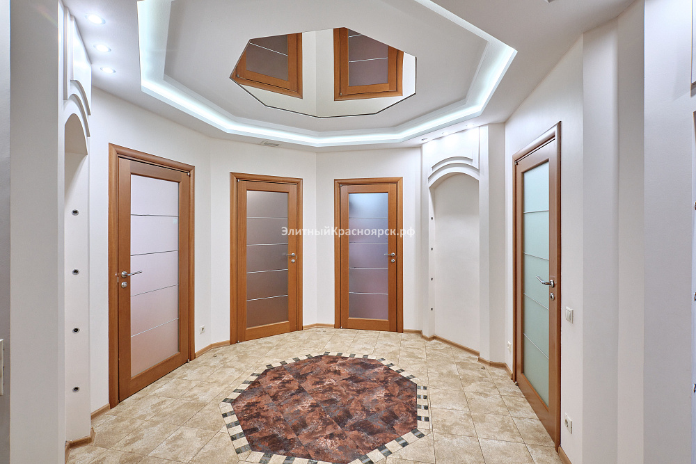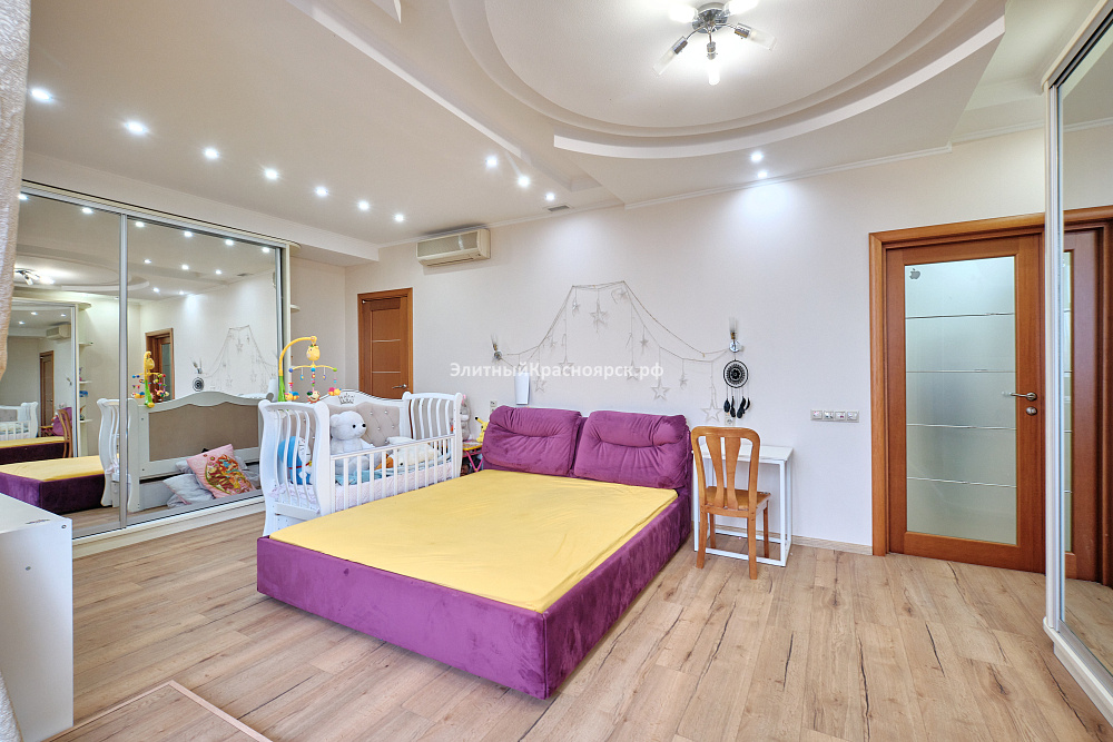 Это большая квартира с четырьмя спальнями, находящаяся на одной из самых уютных улиц города Красноярска. Сейчас девелоперы таких не строят, ведь действительно, на весь дом всего 40 квартир: по две квартиры на этаже. С учетом внушительного перечня инфраструктуры, которая находится непосредственно в доме или в шаговой доступности, мы можем смело назвать этот дом клубным. Здесь есть подземный паркинг, рестораны, парковая зона, супермаркеты, школа, фитнес-центр и многое другое.